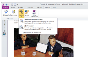 Microsoft Office OneNote cuenta con una interfaz idéntica a las del resto de aplicaciones Office, así como sus herramientas comunes, como diccionarios, traductor y corrector ortográfico.