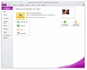 Y no importa dónde te encuentres. Microsoft Office OneNote puede sincronizar tus notas a través de Internet usando tu cuenta Hotmail/Live. Además, permite realizar un seguimiento de los cambios con las versiones de página y compartir bloc de notas vía online.